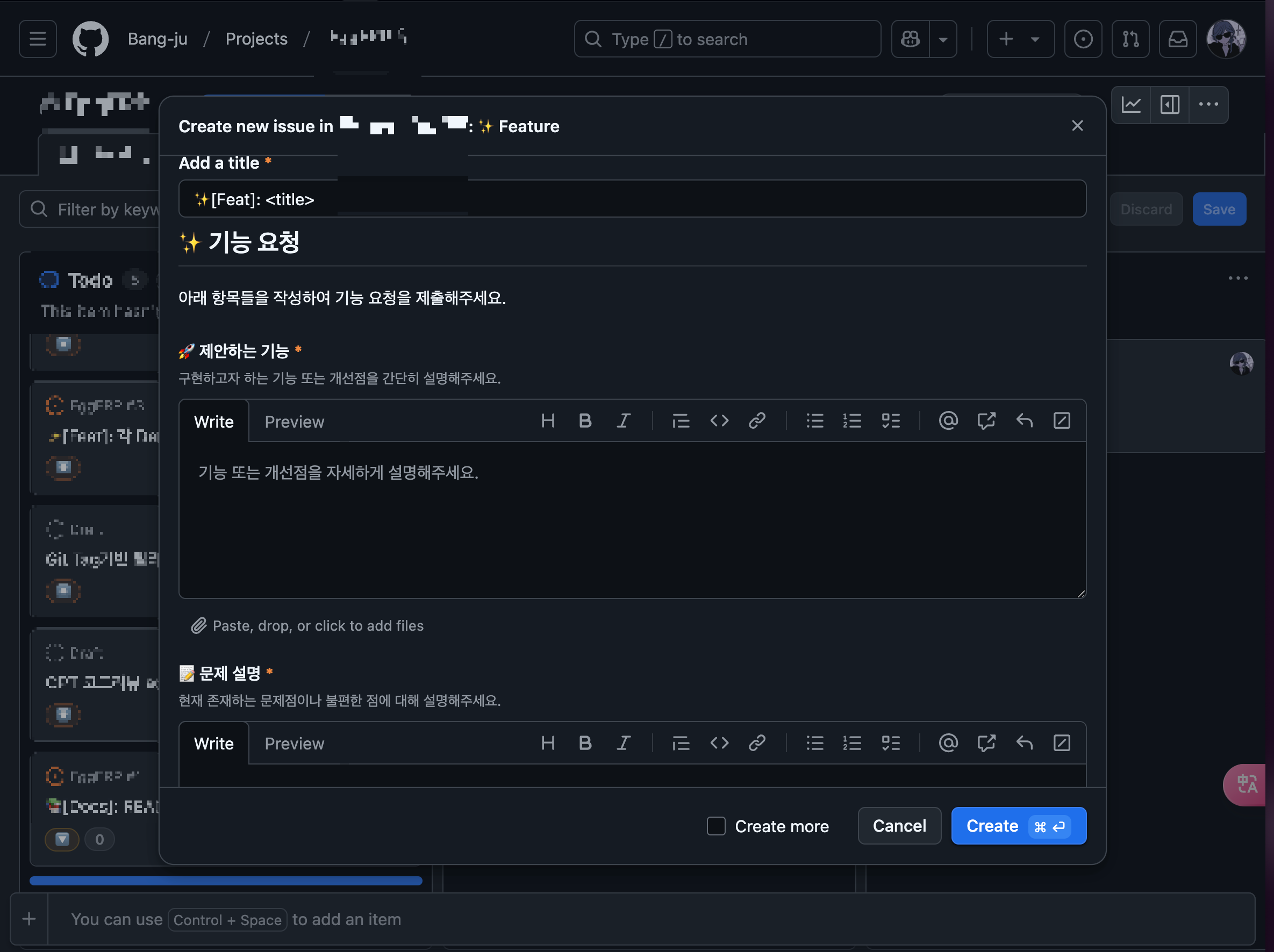 ISSUE_TEMPLATE로 미리 양식을 만들었다.